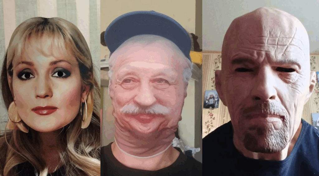 - Latex — volume 3D latex masks Full-size realistic masks with pronounced “skin” texture. Sometimes they have cut-out eyes and are complemented by external attributes