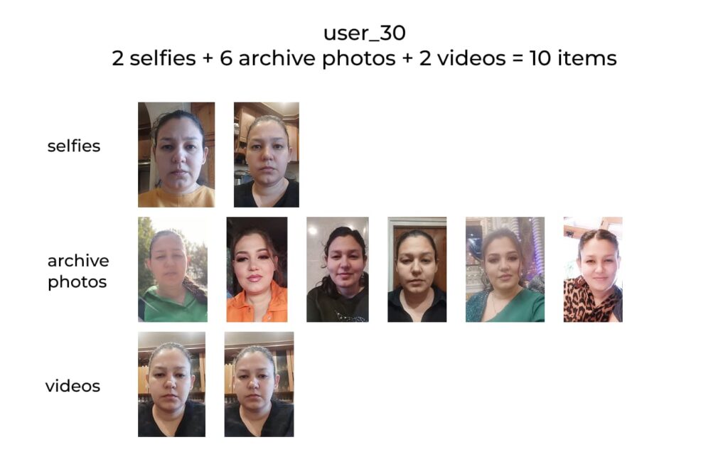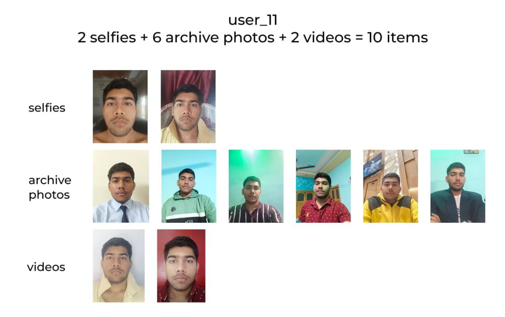 2. Sufficient Per-Identity Training Samples. Models trained on 1-3 photos per person overfit to specific poses and lighting, causing high false negative rates in production. With 5-10 diverse selfies plus videos per identity, our dataset provides the sample density needed for robust feature learning